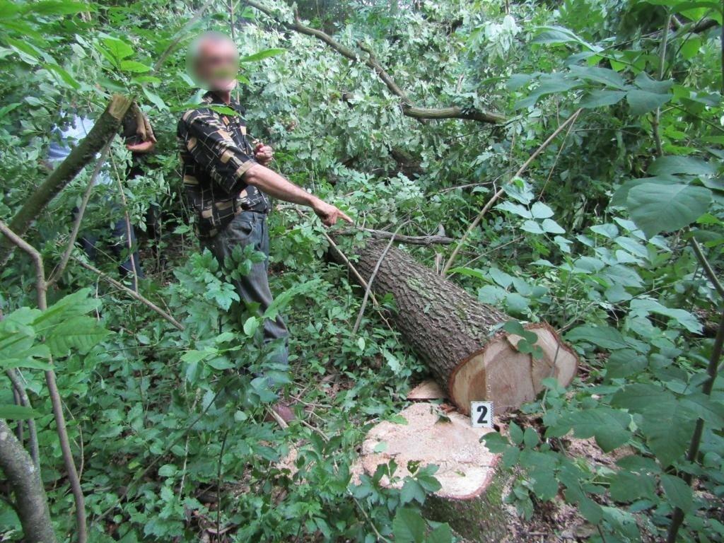 Там виявили зрізаними десять дерев породи дуб діаметром від 39,5 до 68,5 сантиметрів. На місці події поліцейські встановили особу правопорушника.