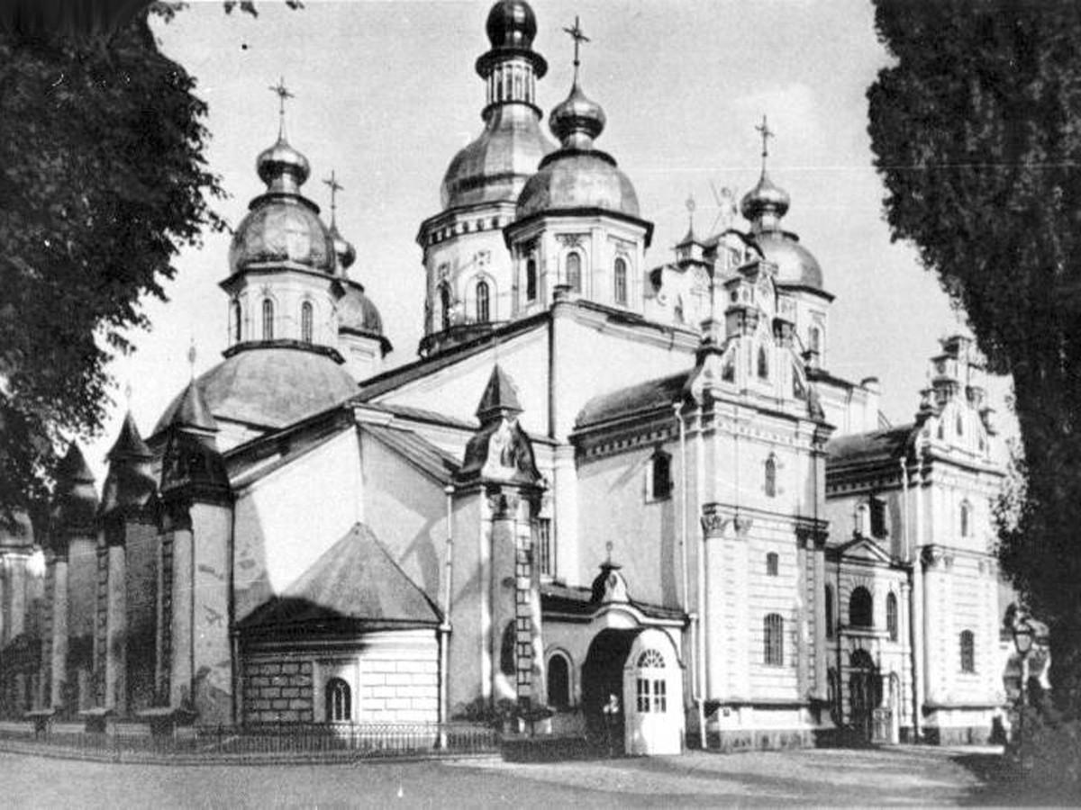 З приходом радянської влади до України у 1922 році Михайлівський монастир ліквідувли. В середині 30-х років після перенесення столиці УРСР з Харкова до Києва влада планувала збудувати на місці монастиря адміністративну будівлю. Не дивлячись на намагання мистецтвознавців собор було зруйновано. Влада дозволила демонтувати стародавні мозаїки і фрески. Зокрема репресовані Микола Макаренко та Дмитро Айналов виступали проти знесення.