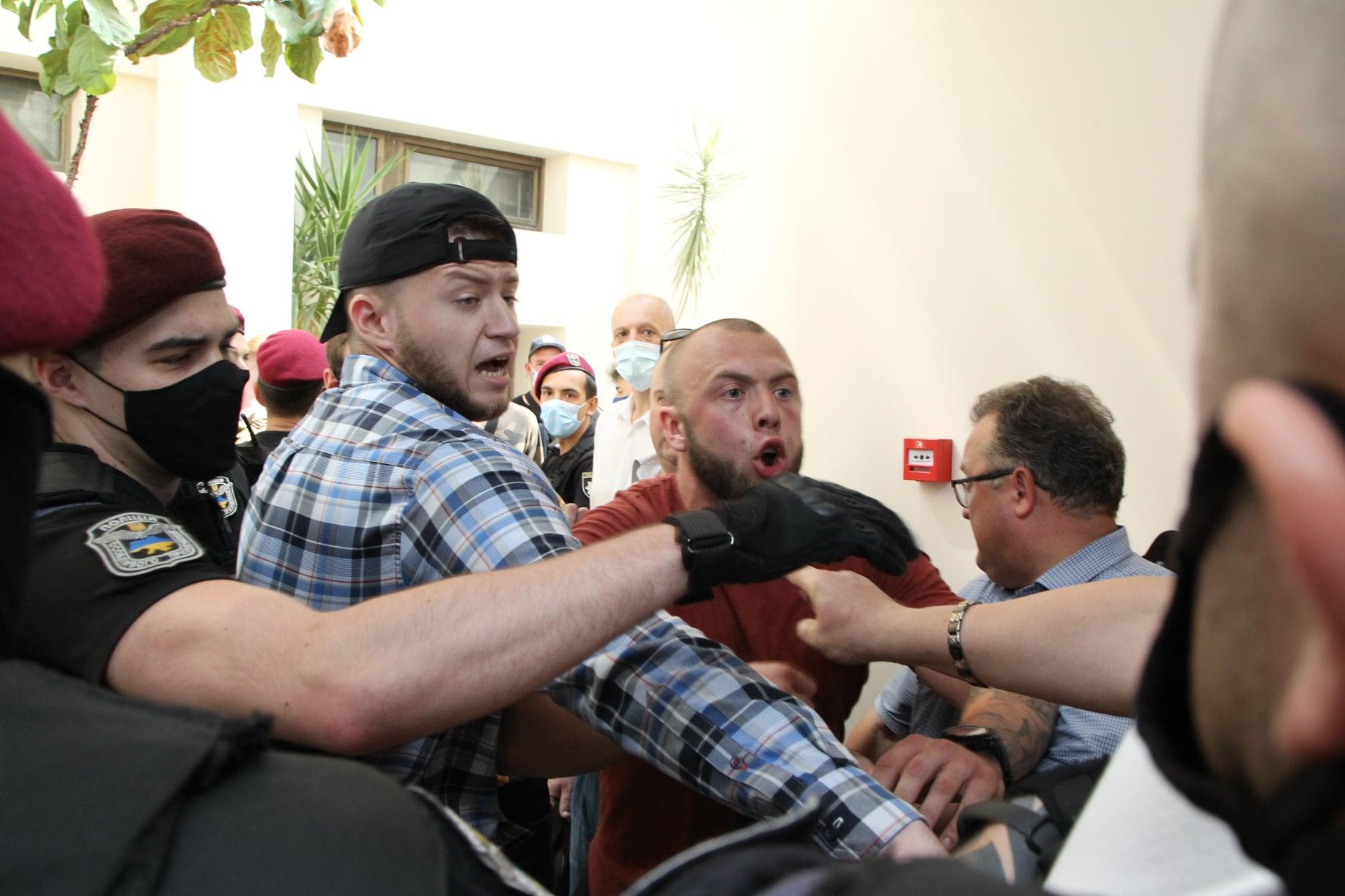 Кілька десятків агресивних молодиків з колонками та відеокамерами намагалися силою не допустити проведення конкурсу. Завдяки поліції невідомих вивели з приміщення.