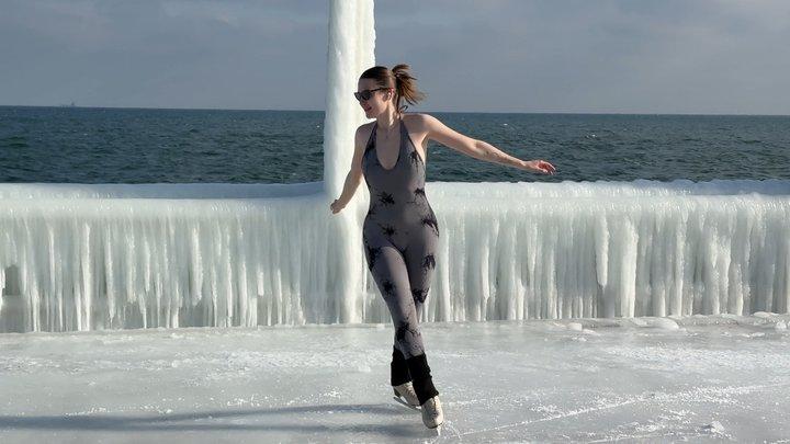 А от Ангеліна любить кататися на ковзанах, тому прийшла на береги моря з ковзанами аби зафіксувати видовище.