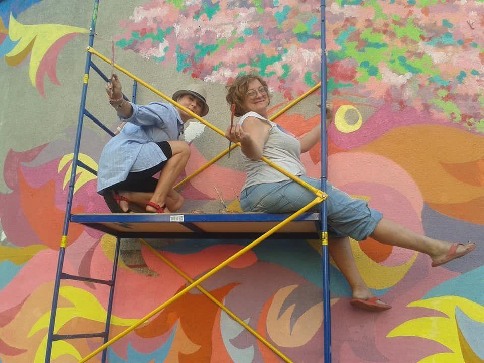 «Малюємо вихідними упродовж останнього місяця. Через три повноцінних робочих дні цей мурал буде повністю готовий», — розповідає художниця Юлія Абрамова.