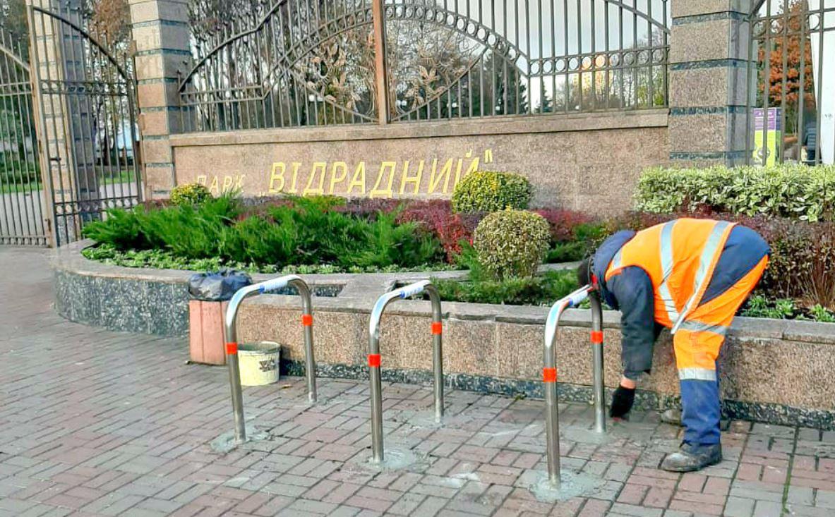 Велосипедні стійки встановили біля парку “Відрадний” та “Захисиків України” на вул. Вінницькій, 10.