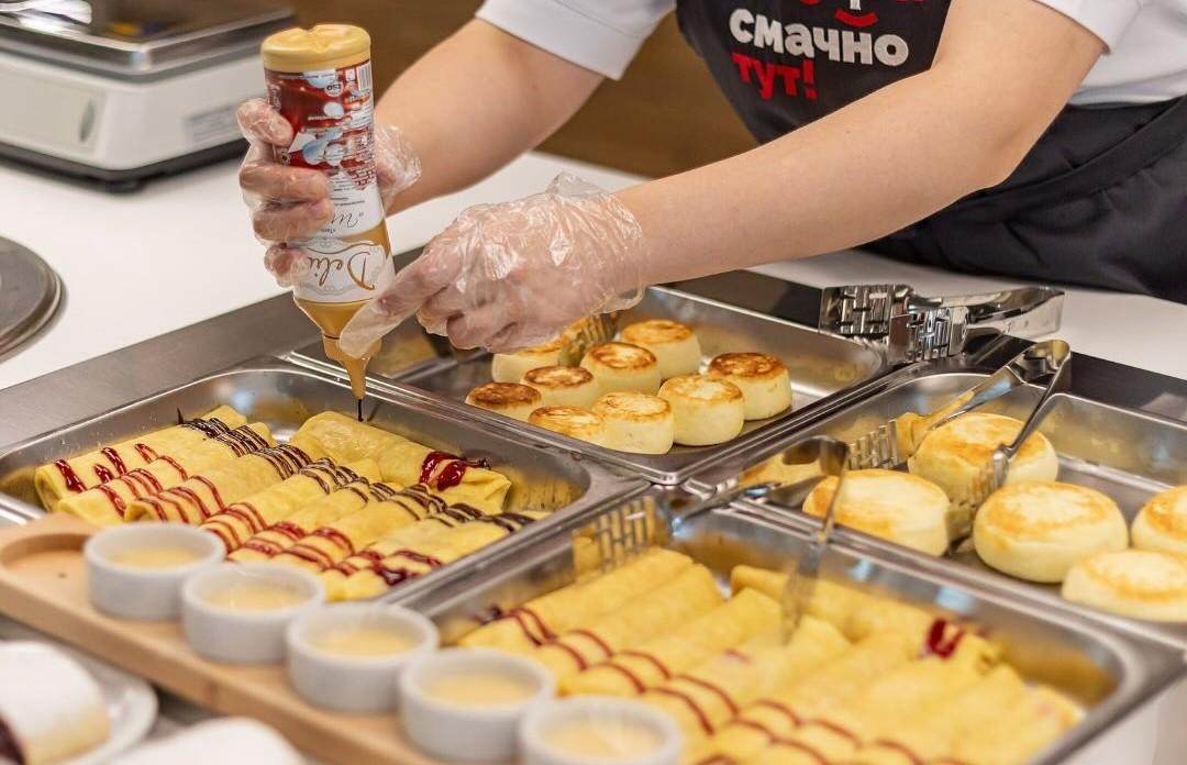 Тут традиційно можна замовити перші й другі страви, гарніри, салати, вареники, млинці й десерти. Окрім того, доступні заморожені продукти: сирники, вареники, млинці, котлети й налисники.