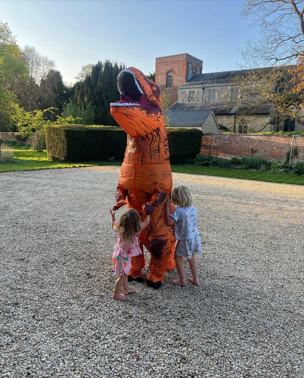 Керрі поділилася фотографіями та відео в Instagram, де видно, як вони з Борисом були в костюмах динозаврів.