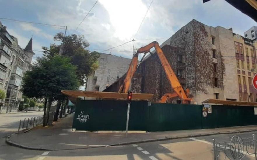 Вночі 11 липня біля будинку з’явилась важка техніка для зносу, а наступного дня почався демонтаж. Щоб зупинити руйнування, кияни прорвались за будівельний паркан та заблокували роботу техніки. Сьогодні стало відомо, що у проекті підготовчих робіт, наданому забудовником, демонтаж фасаду будівлі відсутній.
