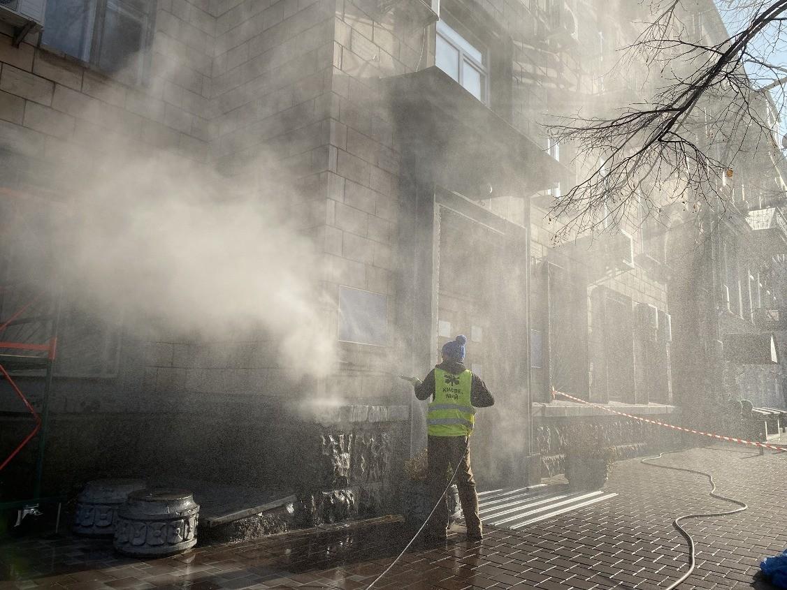 Як розповіла команда ініціативи, вони працювали з 11 ранку до шостої години вечора. Використовували спеціальну речовину для зняття фарби та мийку високого тиску з підігрівом води: двигун працює на бензині, а підігрівається вода завдяки дизельному паливу.