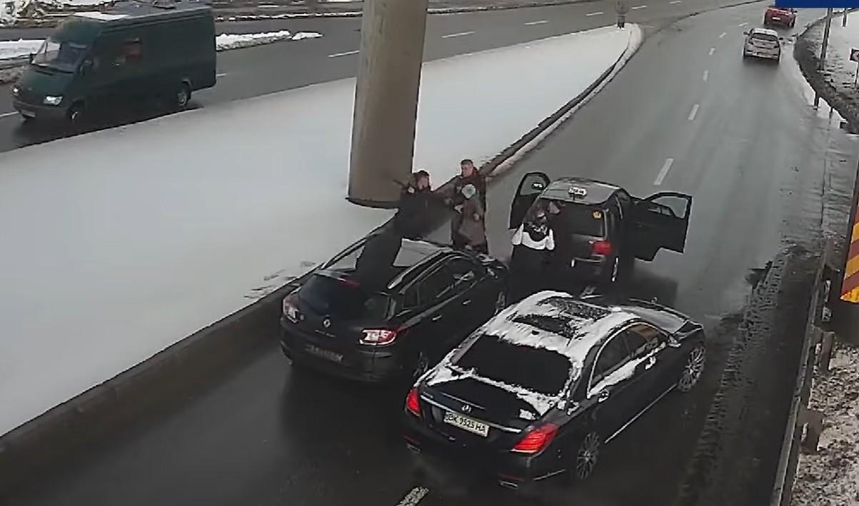 На відео видно, як дві автівки прямують близько одна до одної і жоден з водіїв не бажає поступатись. Зрештою, один обігнав іншого, а коли водії стали з’ясовувати, хто неправий – почалась бійка.