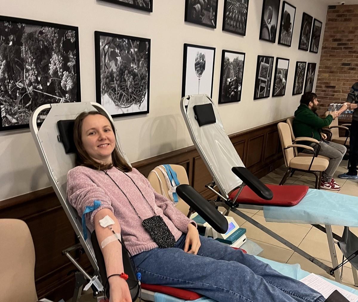 Пункт забору крові вона знайшла за даними, опублікованими групою ДонорUA в ТГ-каналі. У центрі їй виконали за 10 хвилин автоматичний забір крові. За цей час відкачується з організму людини 450-480 мілілітрів.
