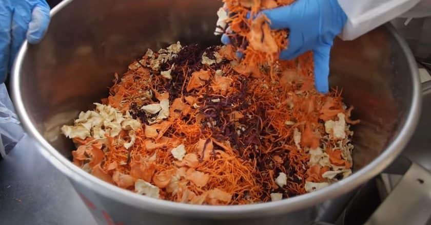 На лінії фронту важко розгорнути польову кухню, а приготування борщу або інших перших страв зазвичай взагалі неможливе. Тому вирішили створити набори для швидкого приготування борщу. До складу цієї страви увійшли дегідровані овочі, консервоване м’ясо та борщова заправка.