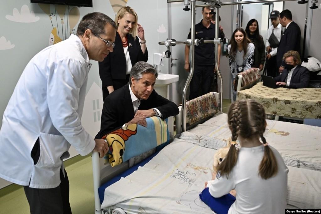 Там же Блінкен відвідав шестирічну дівчинку Марину з Херсона, яка втратила ногу після того, як ракета влучила в її будинок. Також посадовець відвідав ігрову кімнату лікарні, де подарував дітям нові іграшки.