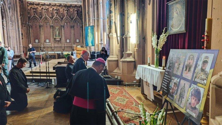 Ви знаєте, що Папа Франциск з великою любов’ю та прихильністю супроводжує вас і завжди має особливу увагу до вашої батьківщини та ситуації війни, в якій вона перебуває. Він молиться за вас, а також дає конкретні знаки. Моя присутність тут, серед вас, також бажає бути знаком любові та прихильності Папи до вас і до всієї України”, – сказав він.