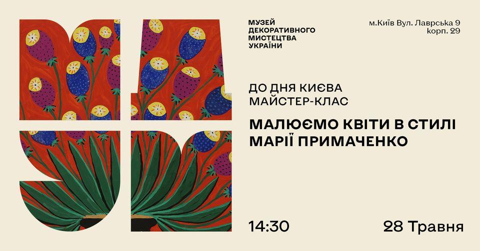 28 травня о 14:30 запрошуємо дітей та дорослих на майстер-клас “Малюємо квіти в стилі Марії Примаченко”.