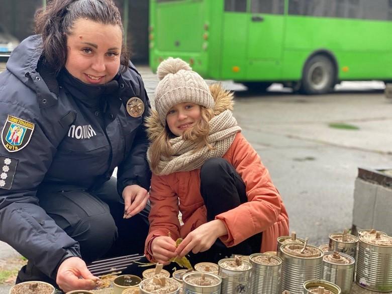 Як розповіли у столичній поліції, співробітники Шевченківського управління поліції разом з дітьми виготовили більше сотні окопних свічок для захисників.