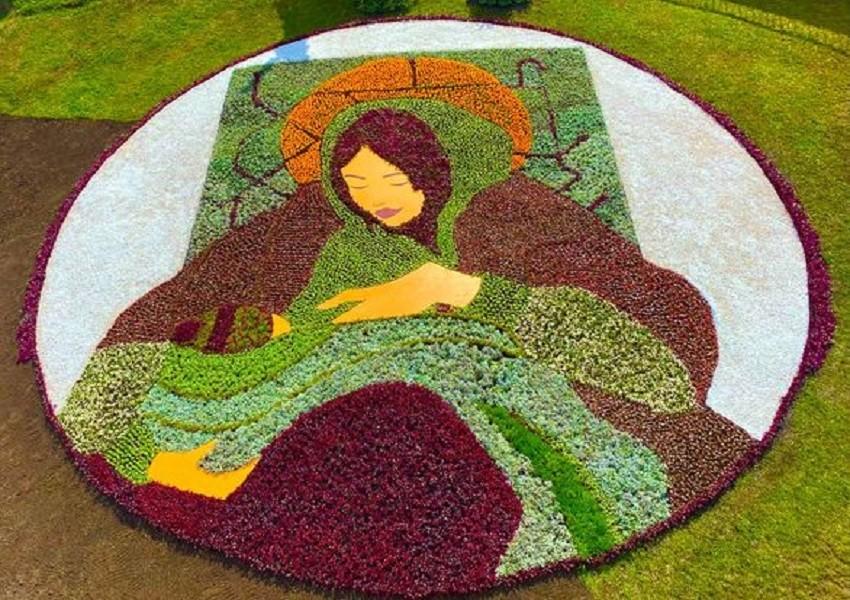 Інсталяцію з квітів створили на транспортній розв’язці по вул. Вадима Гетьмана. Її площа 149 кв. м. Було висаджено 37 тисяч квітів: маргаритки, бегонія, ірезіне, тагетис, цинерарія, нафаліум, традисканція, альтернатера, лаванда, калібрахоа. Також використали елементи з фанери та 1,5 тонни білої мармурової крихти.