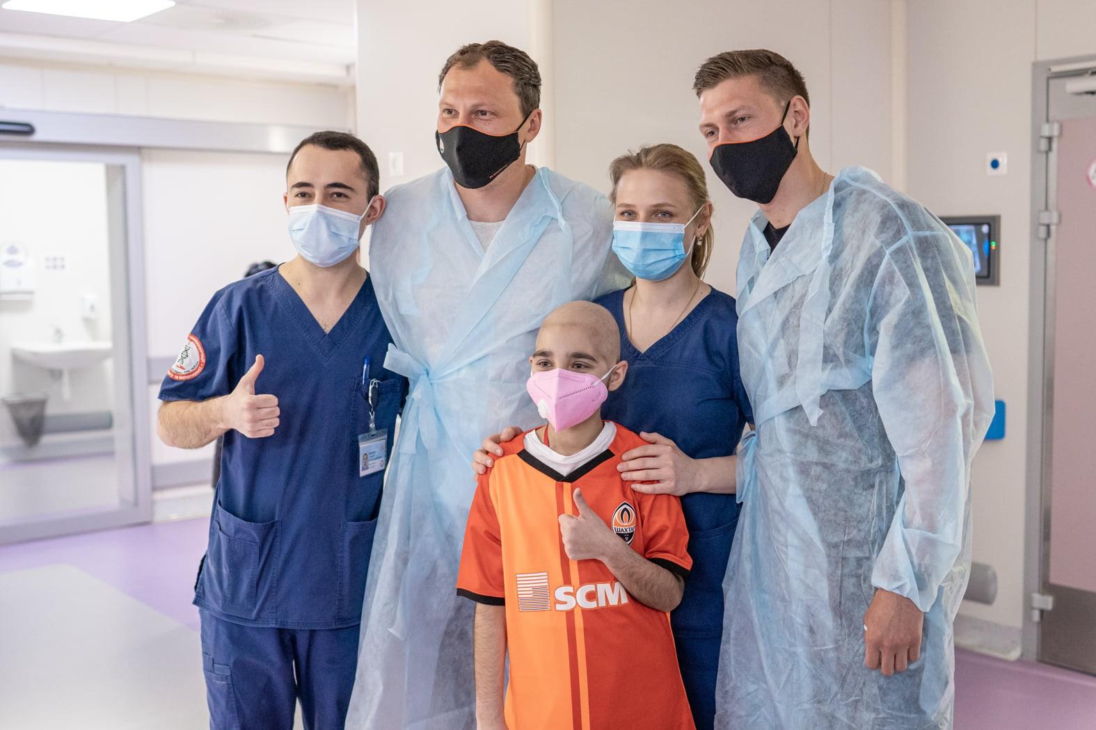 Коли настав час виписуватися, привітати дівчинку, окрім лікарів та родини, прийшли декілька таємних гостей. Ними стали голкіпер та захисник футбольного клубу “Шахтар” Андрій Пятов та Микола Матвієнко.