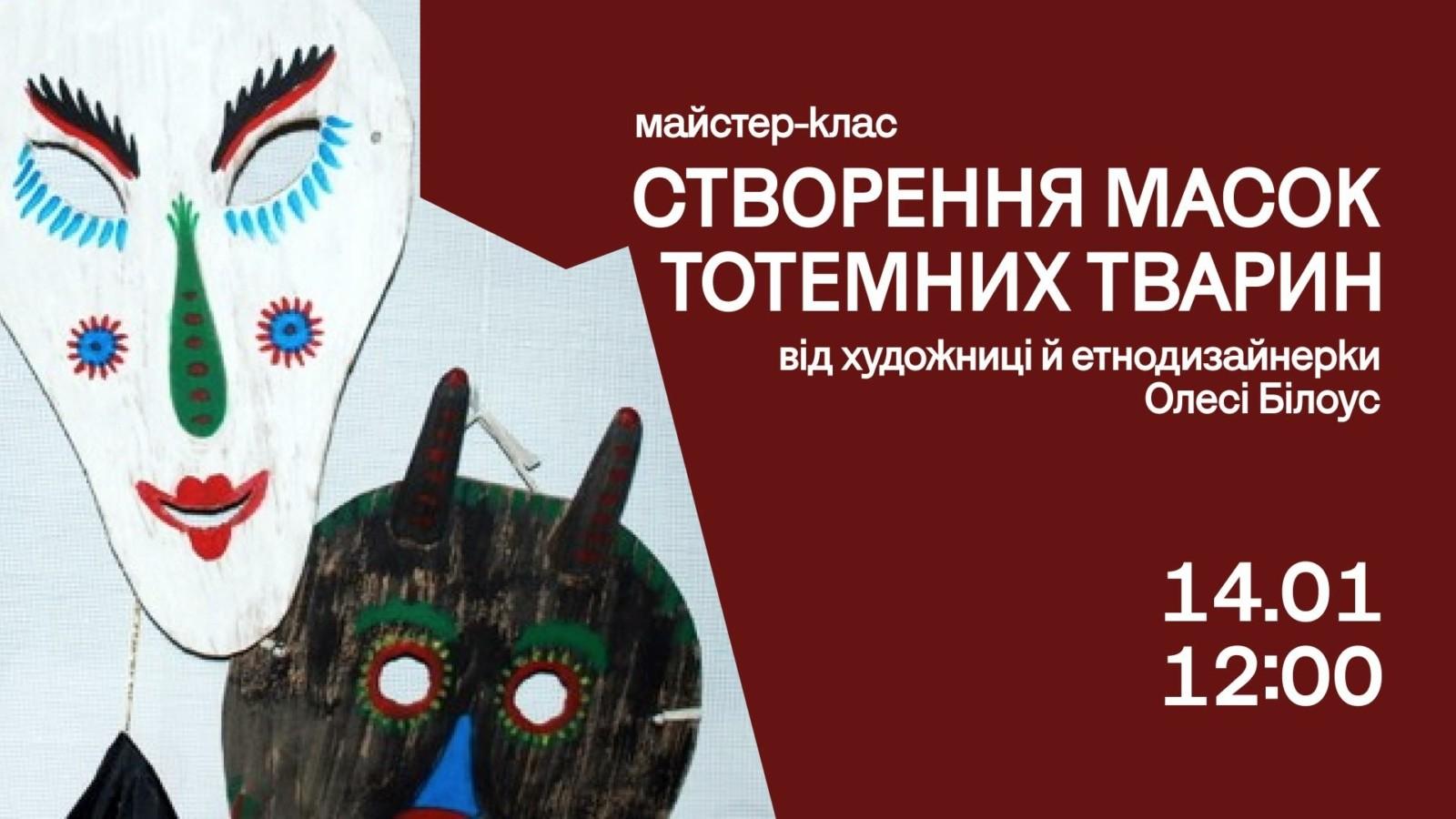Одним з елементів святкування Маланки було створення масок тотемних тварин — Ведмедя, Кози, Корови та Коня. На майстер-класі ви зможете долучитися до творчого процесу виготовлення масок, отримати приємні емоції та здобути нові навички.