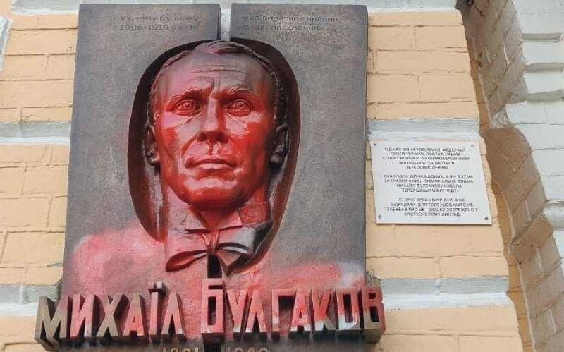 Раніше у Києві невідомі облили червоною фарбою дошку на честь українофоба Булгакова.