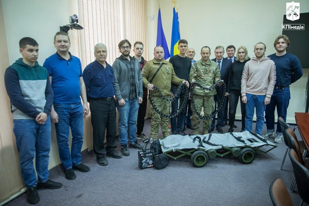 КПІшники передали власноруч зібрані електроноші Мамонова підрозділу ЗСУ. Суттєва перевага такого дрону — вартість, винахід значно дешевший за аналоги.