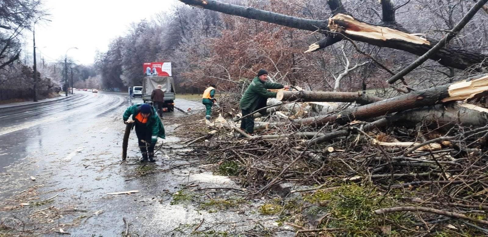 Районні КП УЗН також продовжують прибирати наслідки негоди на своїх балансових територіях. Вагу криги, що намерзла на гіллях та стовбурах, не витримали більше 600 дерев у парках та скверах: 71 дерево зламано повністю та ще 544 пошкоджені, з обламаним гіллям.