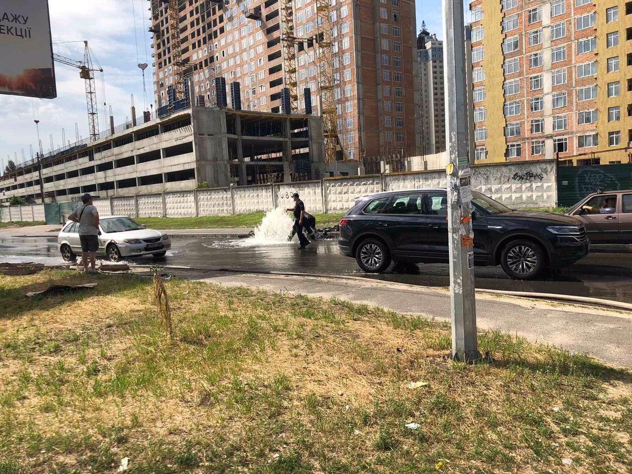 Як розповіли в ДСНС, під час гасіння гаражів по вулиці Сверстюка, фура, що рухалась вулицею, зачепила рукавну лінію разом із встановленою на пожежному гідранті колонкою. Як наслідок — колонку зірвало, а на проїжджій частині утворився фонтан.