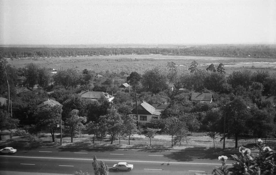 У коментарях дописувач Олексій Назаренко пояснив, що фото зроблено з будинку 21/6 по Харківському шосе, який було здано в 1979 р. Знизу саме шосе, перед приватними будинками (паралельно йому) вул. Врожайна, уже не існуюча. Зараз там будинки 58-62 по Харківському.