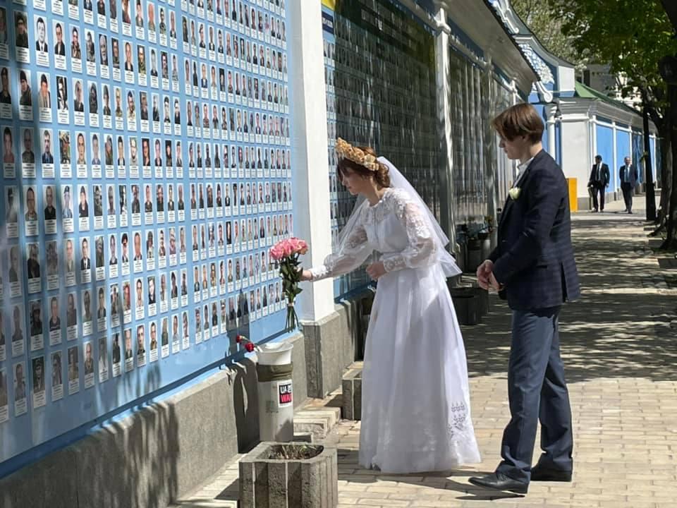 Вони повінчались у перший день війни, а наступного обоє пішли у тероборону. РАЦСи у перші дні війни не працювали, а потім було не до того. Світлини цього подружжя обійшли всі українські ЗМІ, а також обкладинки іноземних видань.