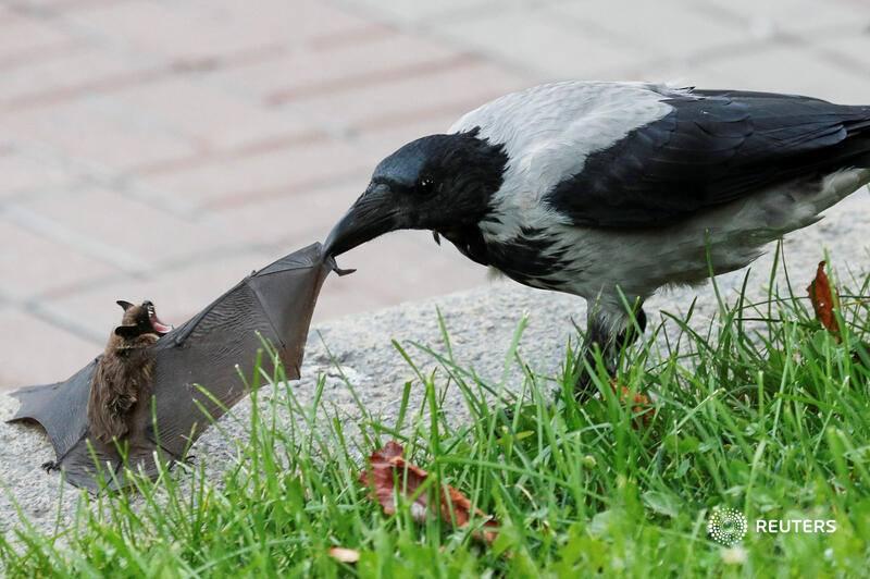 Як розповів фотограф, ворона скинула летючу мишу з дерева, а потім атакувала. Чоловік врятував кажана від ворони – підсадив на дерево.