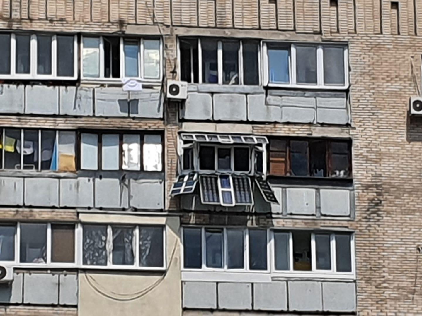 На фото – балкон багатоповрхівки в Ірпіні, на якому “соняшником” укріплено одразу кілька сонячних панелей.