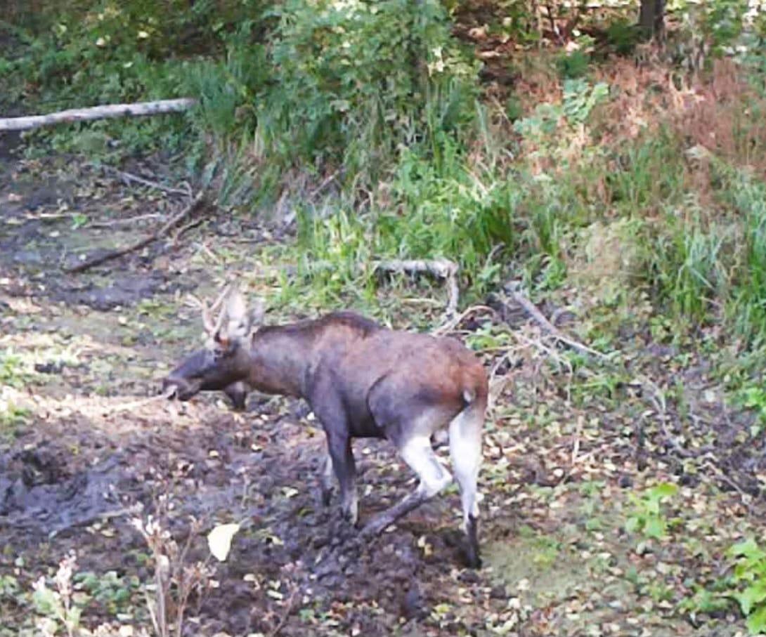 Крім цього, фотопастка зафільмувала зустрічі аж 3-х особин лося (Alces alces) – виду, занесеного до Червоної книги України, у якого восени якраз відбувається період гону.