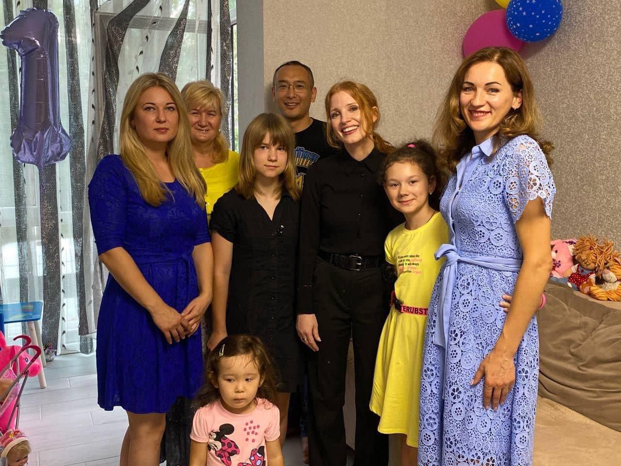 Зірка “Марсіанина” та “Інтерстеллара” поспілкувалася з родинами Вериківських, Ревудських та Наконечних, які пережили російську окупацію. Також Честейн відвідала житловий комплекс «Ірпінські липки».