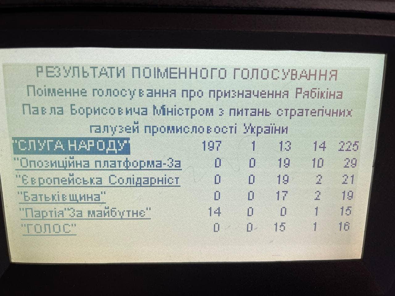 Вона додала, що так само, за допомогою олігархічних груп, були призначені міністри економіки – Юлія Свириденко (214 “слуг”, усього 256) і промислової політики – Павло Рябікін (197 “слуг”, усього 237).