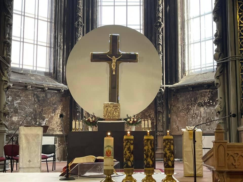 Як повідомляє Парафія костелу святого Миколая у Києві, розп’яття Ісуса Христа встановили нарешті в центрі храму, як це було від початку його функціонування, тобто з 1909 року.
