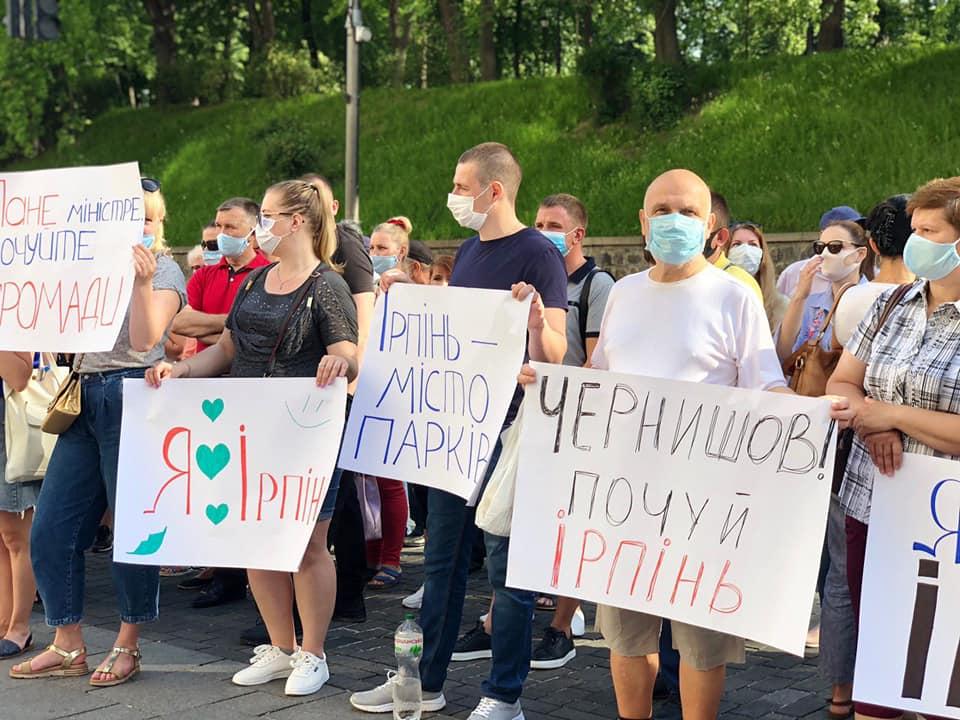 Втім, “Українська правда” повідомляє, що “о 8:00 під Кабмін команда ексмера Ірпеня [Володимира Карплюка] організовано підвезла натовп.