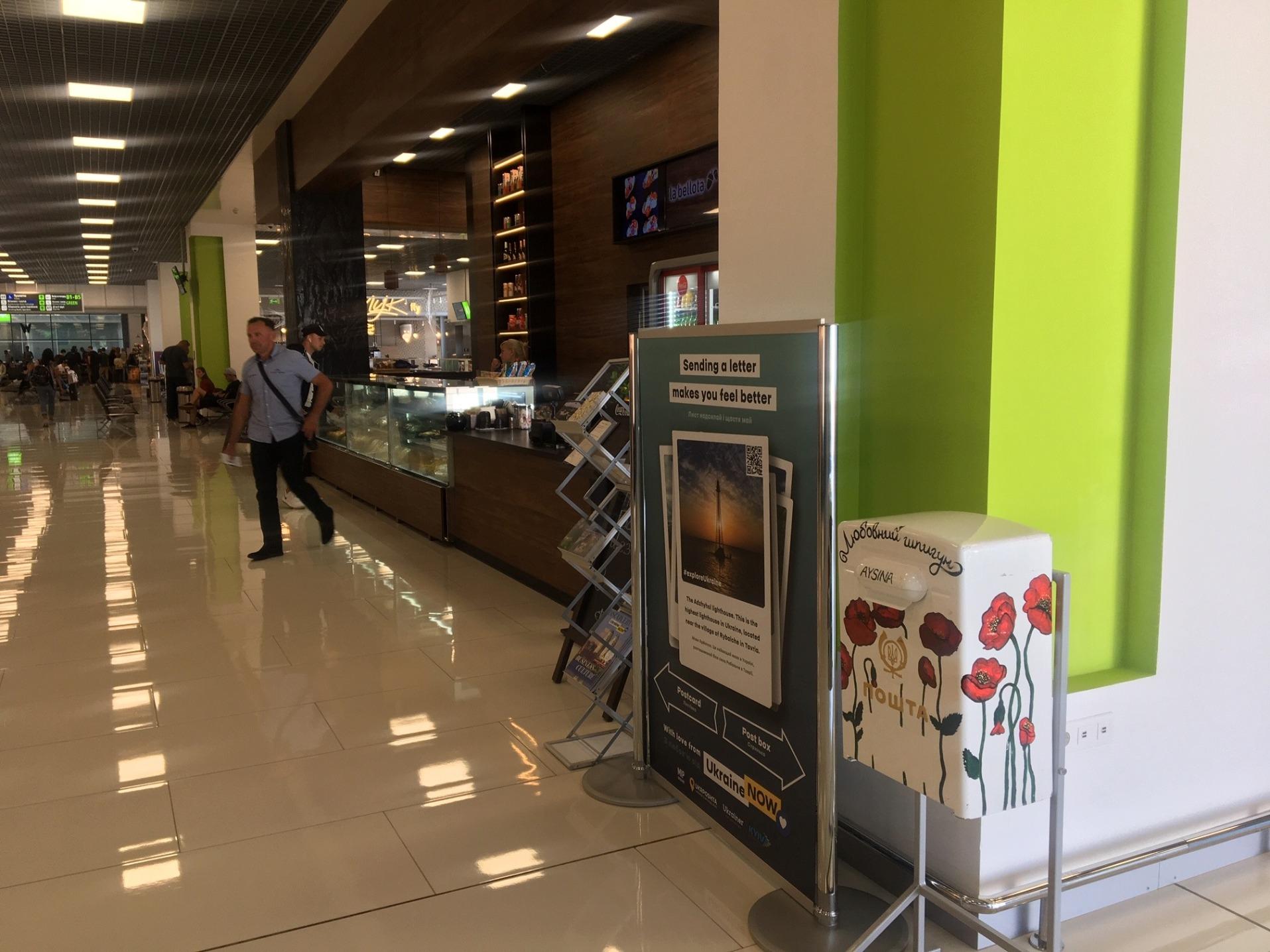 «В течение месяца каждый сможет отправить открытки с изображениями красивых мест Украины своим родным и друзьям в любую страну мира. Десять стендов с навигацией, почтовыми ящиками и листовками удобно расположены во всех залах Терминала «А». Оплатит услугу «Укрпошта», вам только нужно подписать открытку и указать адрес», – говорится в сообщении.