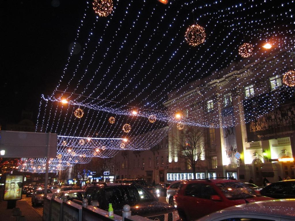 - ул. Грушевского – праздничная иллюминация на тросовых растяжках над проезжей частью и на опорах наружного освещения (новогодние мотивы, гирлянды).