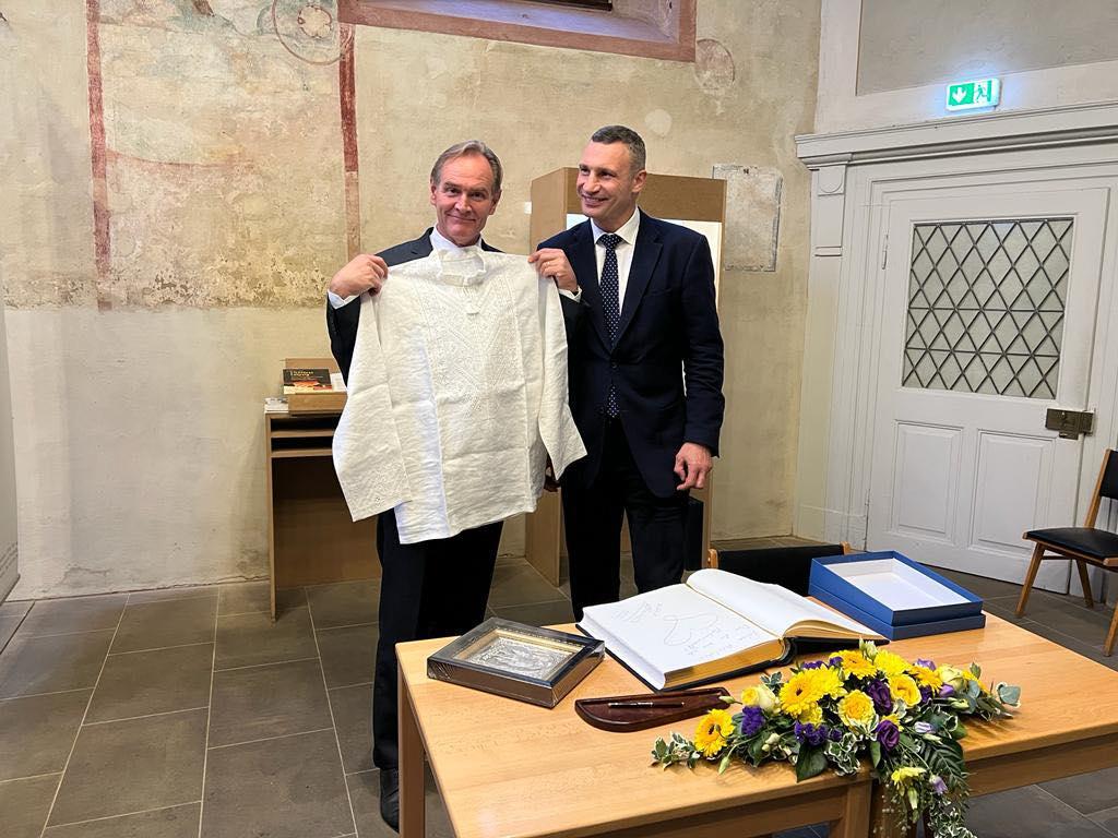 Під час події мер Києва подарував німецькому колезі вишиванку.