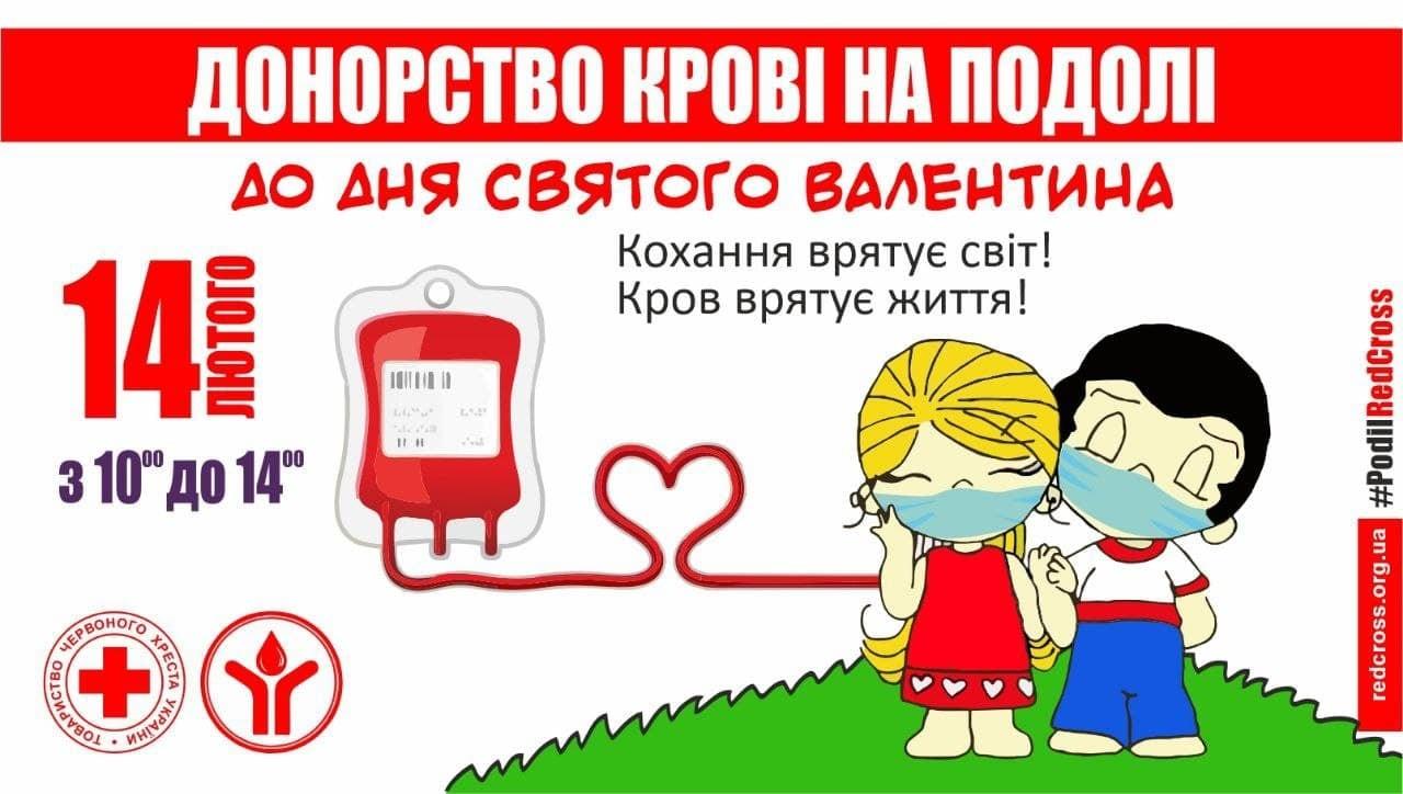 Як повідомили в організації “Червоного Хреста”, що на Подолі, 14 лютого з 10:00 до 14:00 можна долучитися до донорства крові.