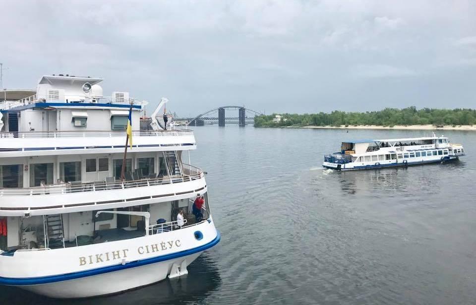 Лайнер «Викинг Синеус» круизной компании Viking Cruises, которая возобновила рейсы между Киевом и Одессой, сделал остановку на причале Киевского речного вокзала.