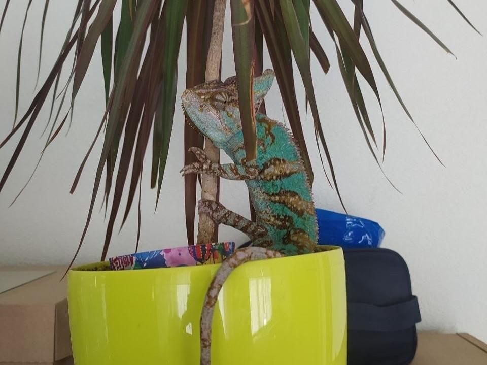 ” Полюбили хлопці цього бєженца всією душею. Бойові побратими як-не-як. Але цьому красунчику тре хоча би тераріум з всілякими гілками в ньому. Бо висіти на драцені для такого геройського героя вопше не варіант”, – з гумором повідомила дівчина.
