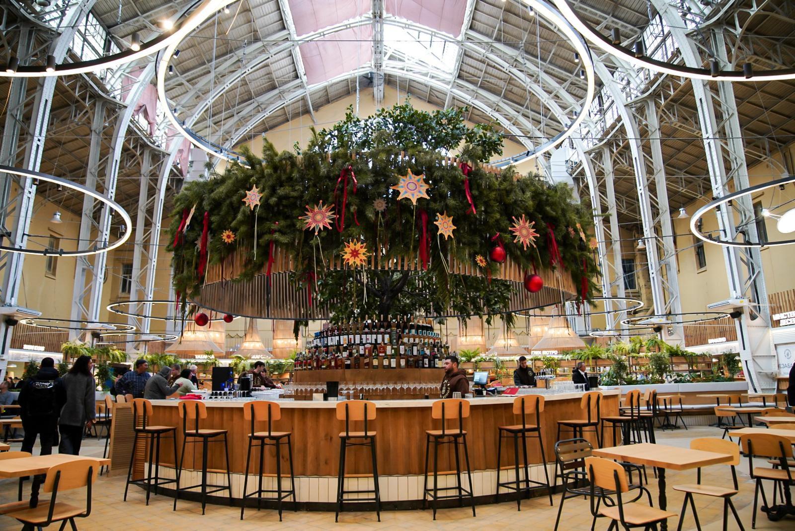 По-третє з’явилося зонування: по центру — ошатний новорічний бар, який одразу впадає у вічі. По один бік від нього фуд-корт, у такому самому стилі, як і фуд-маркет на Арсенальній. Там же — невелика сцена з ялинкою та акустичною системою.
