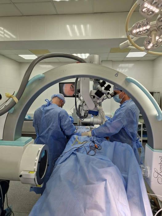 Нейрохірурги провели складну операцію під мікроскопом через 2-сантиметровий розріз на шиї. Вони видалили пошкоджені диски та зламане тіло хребця, замінивши його телескопічним кейджем для стабільності хребта. Завдяки інтраопераційному рентгену конструкцію встановили з ювелірною точністю, уникаючи ушкодження важливих судин і нервів.
