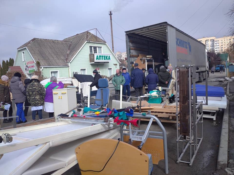 До другої лікарні сьогодні були доставлені ліжка, операційний стіл, кушетки, каталки, післяінсультне реабілітаційне обладнання та інше.