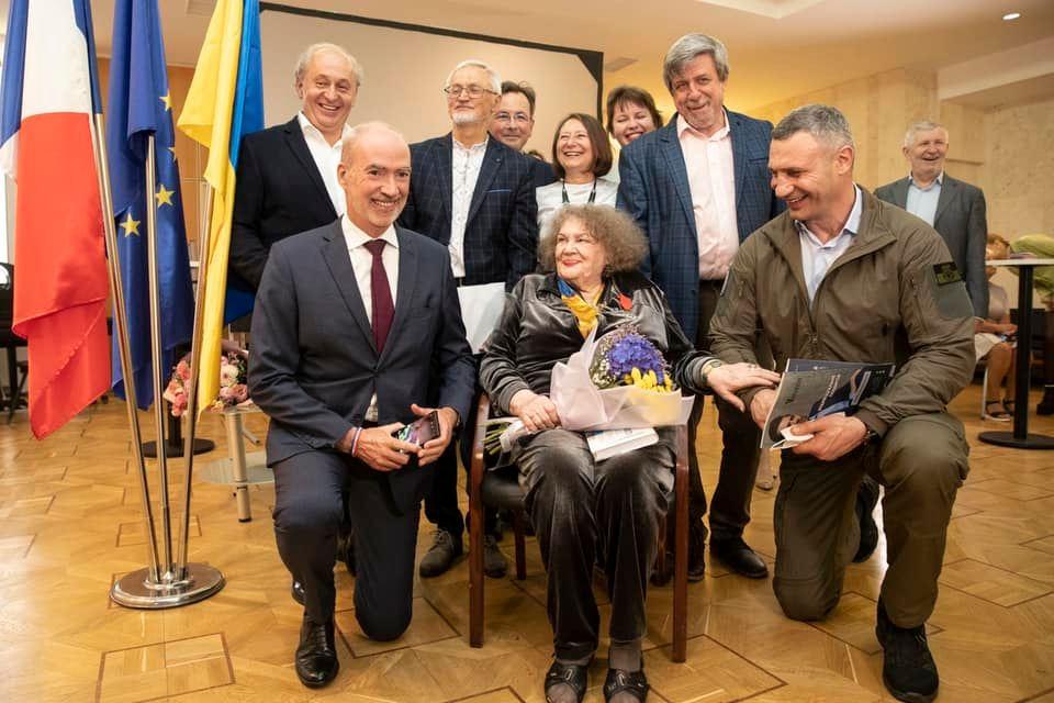 Мер Києва Віталій Кличко привітав Ліну Костенко з нагородою.