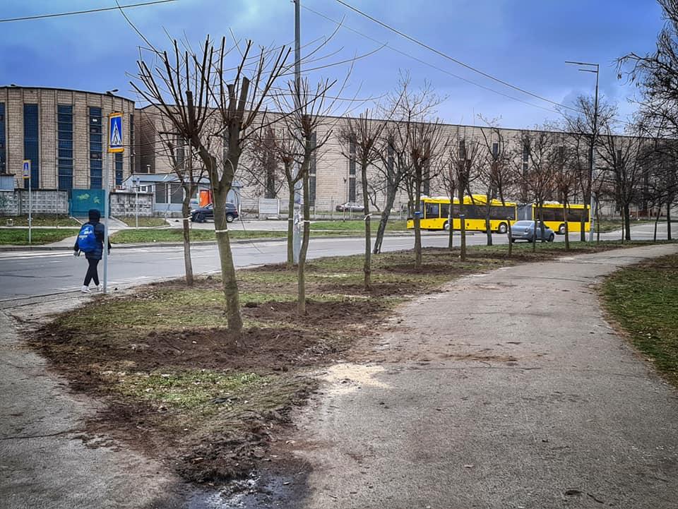 Як повідомляє КП по УЗН Дніпровського району у Facebook, спочатку комунальники підготували землю під посадку крупномірних кленів: викопали величезні ями для кореневої системи дерев.