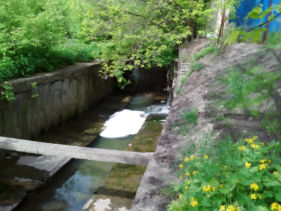 “Мийка врізалася в зливовий колектор (не в каналізацію!) І скидає в річку Либідь брудну хімічну пінну рідину після миття машин. На фото чітко видно скільки в руслі річки піни і шампуню!