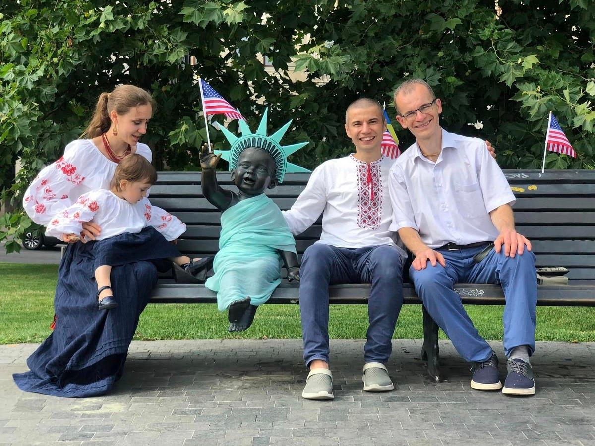 До цього свята, ми з сімʼєю і нашим другом Василієм Семеновим, професором в American University Kyiv, переодягли малюків засновників Києва! Дякуємо США за підтримку України, а саме головне людей в нашій державі! – заявив скульптор Володимир.