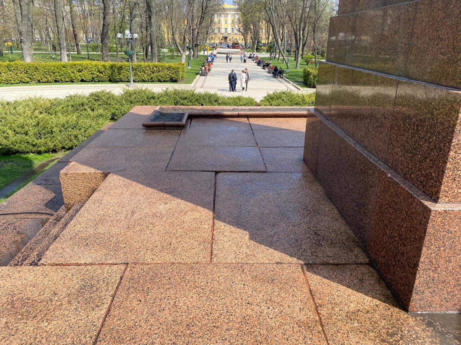 Активісти сьогодні зробили чистішими сходи та постамент пам’ятника Тарасу Шевченку, одного із найвідоміших пам’ятників поету, художнику, письменнику , який встановлено на перехресті алей в центрі парку його імені.