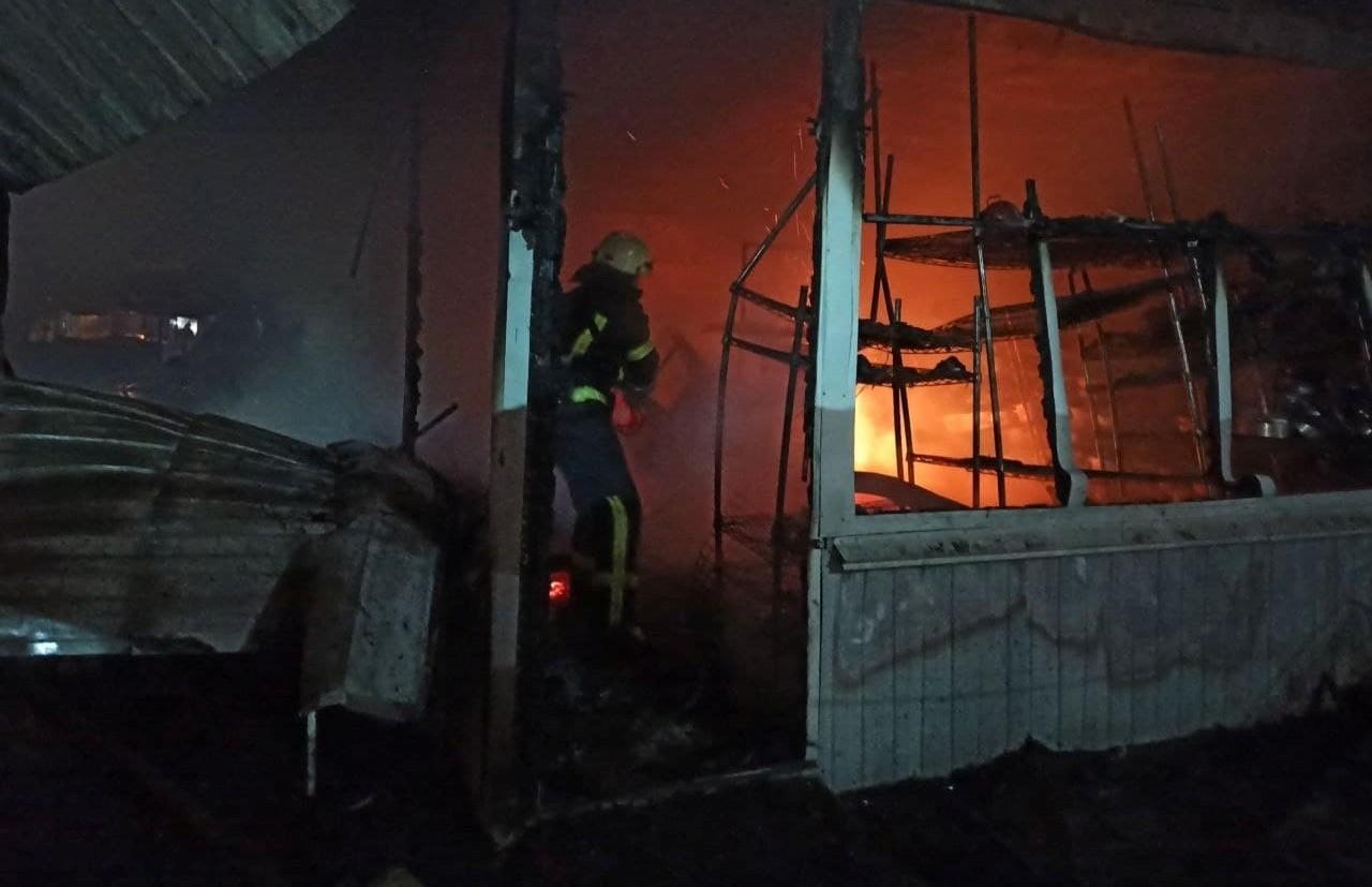 Як розповіли у ДСНС, загоряння виникло в декількох кіосках, з розповсюдженням вогню на поруч розташовану 2-поверхову будівлю. Вогнеборці відразу ж приступили до гасіння пожежі.