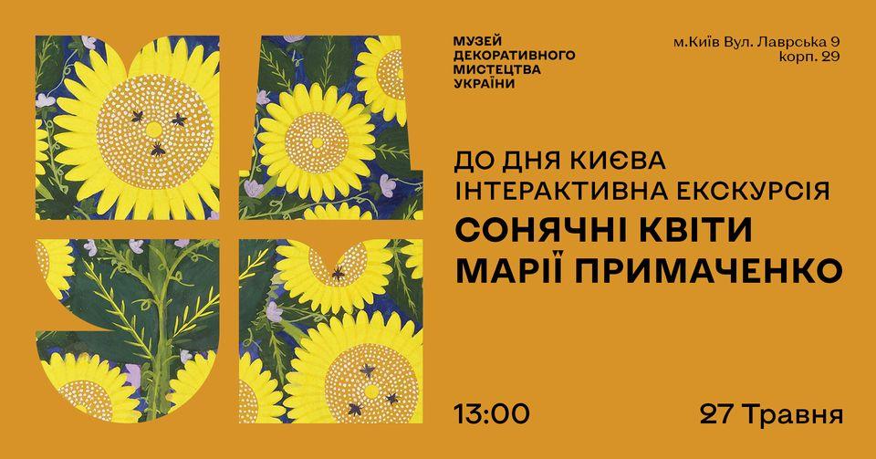 27 травня о 13:00 дітей та дорослих кличуть на інтерактивну екскурсію «Сонячні квіти Марії Примаченко». Та спробувати разом відчути енергію кольорів та надихнутися силою мистецтва геніальної Марії Примаченко.