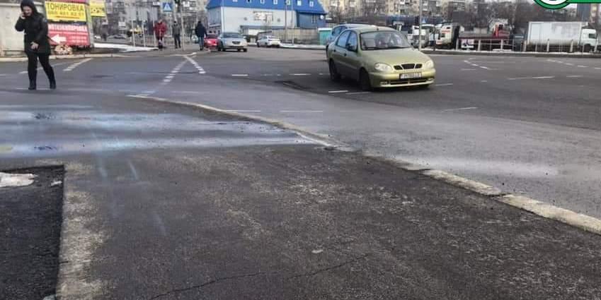 За словами очевидців, асфальт за останній тиждень дуже сильно просів. Зазначається, що на цій ділянці дороги розташована ливнева система в центрі.